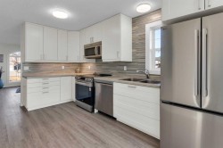 Welcome home to this FULLY FINISHED HOME w/DOUBLE ATTACHED GARAGE & OVERSIZED PARKING PAD. Just over 2000 sq ft of developed & upgraded space. Incredible value in this beautiful 5 bedroom bungalow in the Canals! Situated on a large corner lot & ATTACHED AT THE GARAGE ONLY (none of the living space is connected to the other side of the duplex), this lovely home has been updated w/a newer kitchen - gorgeous cabinetry, countertops, backsplash & BRAND NEW SS APPLIANCES. The cozy living room is host to a corner fireplace & the floors brand new, upgraded LVP. There are 2 good sized secondary bedrooms serviced by a 4 pc bath & the PRIMARY SUITE w/2 closets & 4 pc ENSUITE complete the main floor. All of this is highlighted by FRESH PAINT & NEW LIGHTING throughout the entire home as well as a new PATIO DOOR. Head down the stairs to the fully finished lower level noting the new carpets. This level features a large family/games room, 4th & 5th bedrooms (5th does not have a closet) full bath (yes, 3 full bathrooms in this home) laundry & storage. The flooring is durable laminate - easy to clean! Enjoy a sunny south backyard w/huge deck. The shingles & eaves were replaced in the last 10 years & the furnace has been maintained & cared for. Come & see what this home as well as the Canals have to offer - walkable to Sobey’s, Ralph McCall School, Our Lady Queen of Peach School, Tim Horton’s & more!