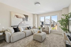 The beautiful Dawson model is a brand new home that features 2 living areas, 3 bedrooms, 2.5 bathrooms and nearly 2,300 square feet of developed living space + an undeveloped basement that awaits your imagination! Located in the heart of Chinook Gate and ideally situated on a large conventional lot with a south-facing backyard, this new home is perfect for a growing family. The double attached garage leads to an expansive mud room that has access to the front of the home and the large walk-through pantry/coffee bar that leads into the kitchen - adding to everyday convenience. The gourmet kitchen is complete with a cooktop, chimney hood fan, built-in wall oven & microwave, and features a central island with additional seating space. The kitchen overlooks the dining area and living room - making this the perfect family home or entertainment space! A central cantilevered gas fireplace in the main level great room is perfect for cozy winter nights. Double patio doors and windows on either side of the fireplace allow for the south-facing backyard sunshine to flow throughout the main living area all day long. The main level is complete with a large foyer, 2 pc powder room and two sets of double closets for ample storage. On the upper level, the bonus room is at the front of the home, overlooking the front street and providing the perfect tv space. The large primary suite is at the back of the home, overlooking the backyard, and is complete with walk-in closet and a 5 pc ensuite including a walk-in tiled shower, soaker tub, double sinks and a private water closet. Two more generous-sized bedrooms, each complete with their own walk-in closets, a full bathroom and laundry room complete the upper level. The undeveloped basement is a clean slate with bathroom rough-ins in place, making future development that much easier! Situated on a conventional lot (not a zero lot-line) that is over 3,700 ft2 in size, with a south-facing backyard, this beautiful new home is perfect for a growing family! This brand new home includes builder warranty + Alberta New Home Warranty - allowing you to purchase with peace of mind in the new community of Chinook Gate.