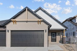 Discover this rare opportunity within Acadia Villas, an exclusive, private gated community nestled in the heart of the award-winning Cooper's Crossing neighborhood. Designed specifically for the discerning downsizer, this community features just 40 meticulously crafted, luxury bungalows, promising both security and serenity. Step into this exceptional bungalow, spanning 1,401 square feet of thoughtfully designed open concept living. The bright and airy ambiance in living area is defined by soaring vaulted ceilings that flood the space with natural light, enhancing the sense of spaciousness and grandeur. The main floor has an ideal layout which hosts 1 bedroom plus den and two full bathrooms, complemented by a practical back hall and a dedicated laundry room for ultimate convenience. The primary bedroom is a true sanctuary, featuring its own vaulted ceiling and generous proportions. The opulent five-piece ensuite is a spa-inspired finishes complete with a walk-in shower, a decadent freestanding soaker tub, and elegant double sinks. Throughout the home, you will find premium finishes including sleek quartz countertops with undermount sinks, durable luxury vinyl plank, and sophisticated tile flooring in all bathrooms. Every detail reflects an unwavering commitment to luxury and low-maintenance living. For those envisioning even more living area, the unfinished basement presents limitless potential. This expansive space offers the opportunity to add additional bedrooms, an expanded entertainment area, or a personalized recreational space—ensuring the home can grow with your changing needs. Acadia Villas provides luxury living without compromise, offering the independence of a bungalow with the security and maintenance-free ease of a gated community.