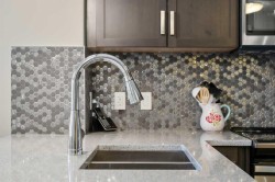 Welcome to The Chateaux! Airdrie's premier 40+ condo building in the wonderful community of Kings Heights. This complex offers sophistication, pride of ownership, and unbeatable proximity to all amenities. Upon entering this unit, you'll be impressed by the abundance of natural light, enhanced by its south-facing exposure. You're greeted by beautiful tile flooring that leads into a welcoming front entrance, where you'll find a spacious coat closet with built-in shelves, perfect for storing coats, keys and shoes. To your right is the kitchen, you will love not only the generous counter space but also the ample cabinetry this layout offers. The kitchen features granite countertops, a large sink, a lazy Susan in the corner cabinet, a garburator and a counter overhang for bar stool seating, ideal for casual meals. Stainless steel appliances and a well-appointed pantry with pull-out drawers complete this thoughtfully designed space. Moving into the living room, enjoy a spacious layout complemented by a beautiful custom California Closets media centre that is perfect for your TV, artwork and storage needs. Stay cool in the summer with a wall-mounted A/C unit. Your southwest-facing balcony offers year-round afternoon sun, making it the perfect place to enjoy your morning coffee, tea or an evening drink. This balcony was upgraded at the time of construction with glass panels and a gate, offering convenient direct access to the landscaped common areas, especially great for pet owners. The primary bedroom is a dream, with a large south-facing window and a spacious walk-through closet that leads into your ensuite bathroom. The ensuite features a walk-in shower with a built-in seat and elegant glass doors. The second bedroom is impressively sized and bright with custom built-in California Closet organizers that provide exceptional storage and organization. A second full bathroom is located just outside this room, complete with a beautiful vanity and a large bathtub. In-suite laundry is neatly tucked into a dedicated closet with room for storage and laundry supplies. This apartment also features a versatile den to the left of the front door that is ideal for a home office, additional storage or exercise space. For parking, enjoy the convenience of a titled underground stall located just steps from the elevator. In front of your stall, you’ll find a large, secure storage locker. Plus, there’s ample outdoor visitor parking for your guests. The Chateaux features a beautifully landscaped courtyard with a gas fireplace, and an amenity room available for private bookings where residents regularly gather here for social events and happy hours. There's also a secure underground workshop for woodworking enthusiasts. Located in Kings Heights, you’re within walking distance to Save-On-Food, Shoppers Drug Mart, banks, salons, restaurants and more meeting all your grocery, shopping, and healthcare needs. This building is truly designed for mature ownership & a vibrant, social community.