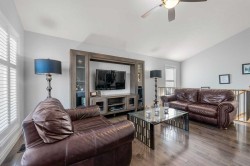 ** Stunning Home with a Walkout Basement Backing onto the Canal with a private dock** Manicured Landscaping Front & Back Yard | Canal Views | 2,696 SqFt | 4 Bedrooms | 3.5 Bathrooms | Modern Finishes | Accent Walls | Electric Fireplace | Chef's Kitchen | Full Height Cabinets | Stainless Steel Appliances | Gas Stove | Chimney Hood Fan | Oversized Kitchen Island with Extended Barstool Seating | Walkthrough Pantry | Main Level Office/Den | Vaulted Ceilings | Multiple Ceiling Fans | Central Air Conditioning | Grandiose Bedrooms | Spa Ensuite Bath | Steam Shower | Upper Level Bonus Room | Upper Level Laundry | Finished WALKOUT Basement | Entertainer's Palace | LED Pot Lighting Throughout | Rec Room/Media Centre | Dry Bar | Expansive Composite Deck | Concrete Patio to Walkout Basement | Artificial Turf | Stone Retaining Walls | Firepit | OVERSIZED Double Attached Garage. Welcome home! This stunning 2-storey family home is full of incredible modern finishes, high vaulted ceilings, LED pot lighting, large windows & ample living space. The main level has a beautiful open floor plan kitchen, dining & living area encouraging entertaining friends & family. The sparkling chef's kitchen is outfitted with full height cabinets, stainless steel appliances, a gas stove, statement piece chimney hood fan & a beautiful centre island. The island has an extended barstool seating area great for small meals. The kitchen has a walkthrough pantry that leads to the interior garage door for an easy grocery drop. The dining room is paired with a door that leads to your composite deck with views of the canal. The deck has a gas line built in your summer BBQs. The living room has a stone accent wall adding both texture & style to this space. The main level office/den sis a great addition for a work from home lifestyle. The vaulted ceilings compliments the true size of this home. Upstairs holds 3 bedrooms, a bonus room & laundry room. The primary retreat is a personal oasis with a view of the canal, a walk-in closet & private ensuite. The ensuite has double vanities, a walk-in steam shower with a built-in bench and a cheater laundry door. Bedrooms 2 & 3 upstairs are both a generous size & share the 4pc bath with a tub/shower combo. The bonus room is a great space to relax & unwind in the evenings. The upper level laundry room is outfitted with front loading washer & dryer with a folding shelf above, cabinetry for storage & a sink for prep. Downstairs, the walkout basement is made to entertain! The dry bar & rec room are inviting & make an incredible hobby room for your liking. The basement holds the 4th bedroom in this home along with another 4pc bath. Step outside to the picturesque backyard with polished landscaping & incredible living space. The concrete patio is covered from the upper deck providing with a covered dining space. The stone retainer walls add depth to the space. Walk out onto your private deck & enjoy a beverage at the end of your day. Hurry & view this stunning home today!
