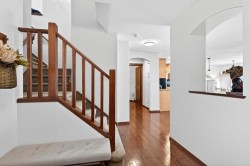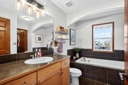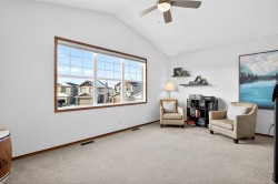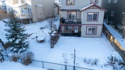 Welcome to this spacious two-storey family home in the highly sought-after Sagewood community. This property presents a rare blend of comfort and versatility, featuring a total of 4 bedrooms and 3.5 bathrooms. Recently refreshed with modern lighting fixtures and new blinds throughout, the home radiates a bright, appealing atmosphere. The main floor boasts an open-concept living area with a cozy gas fireplace, perfectly flowing into the dining room where you can step out onto a spacious balcony offering serene, direct views of the canal—your perfect spot for morning coffee or evening entertaining. Upstairs, the separation provided by the central staircase leads to a bright bonus room with vaulted ceilings, ideal for a media room or home office. The primary suite is a true retreat, featuring exceptional canal views, a walk-in closet, and a 4-piece ensuite with an extra-deep soaker tub. Adding significant value and flexibility, the illegal basement suite offers separate access, laundry, a bedroom, and a kitchenette, making it ideal for multi-generational living or rental income. The expansive backyard is a private oasis with green space, gardens, and an entertainment area, all while providing direct access to the tranquil canal walking paths. Don't miss the opportunity to own this Sagewood gem!