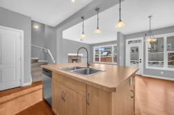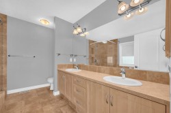 FRONT ATTACHED GARAGE | 2,000sqft + | BONUS ROOM | SOUTH FACING BACKYARD | 3 BEDROOM + 2.5 BATHROOM | Welcome to this inviting and thoughtfully designed 3 bedroom, 2.5 bathroom home located in the highly sought-after community of Hillcrest. From the moment you step inside this 2,000+sqft home, you’re welcomed by a bright foyer that opens into a spacious main level featuring 9 ft ceilings, creating an airy and comfortable atmosphere throughout. The open-concept layout includes a warm and inviting living room highlighted by a cozy fireplace, a well-planned kitchen with plenty of cabinetry and counter space, and a generous dining area perfect for family meals or hosting guests. Large patio doors provide an easy transition to the sunny south-facing backyard, offering an ideal space for summer barbecues, relaxation, or play. Upstairs, the thoughtfully designed layout continues with a beautiful primary suite featuring three large windows that fill the room with natural light, a spacious walk-in closet with its own window, and a well-appointed 5-piece ensuite complete with a soaker tub, separate shower, dual sinks, and a private water closet. The upper floor also includes a convenient laundry room, a large bonus room with an elegant tray ceiling that’s perfect for movie nights or a home office, two additional comfortable bedrooms, and a full 4-piece bathroom. Perfectly situated within walking distance to schools, parks, pathways, playgrounds, and the community pond, this home offers both convenience and a family-friendly lifestyle. Shopping, dining, and everyday amenities are just minutes away, and with quick access to Highway 2, commuting is easy. This Hillcrest home combines comfort, functionality, and a fantastic location—an excellent choice for families and professionals seeking a well-rounded home in a vibrant community.