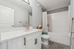 Welcome to this beautifully designed two-storey home in the desirable community of Cobblestone Creek—where style, function, and thoughtful design come together.Step inside to an inviting OPEN-CONCEPT main floor featuring a chef-inspired kitchen that is a showstopper with WATERFALL QUARTZ COUNTERTOPS on the ISLAND with a BREAKFAST BAR, an INDUCTION RANGE, sleek hood fan, BUILT-IN MICROWAVE, and a WALK-THROUGH PANTRY connecting seamlessly to the mudroom. The mudroom offers a BUILT-IN BENCH and convenient access to the TRIPLE ATTACHED GARAGE, complete with an EV CHARGER, SIDE ENTRANCE, and a handy BIN STORAGE SYSTEM. The living room impresses with soaring OPEN-TO-BELOW CEILINGS, an OPEN RAILING, and an ELECTRIC FIREPLACE with a MANTLE, creating a stunning focal point for family gatherings. A dedicated OFFICE on the main floor, is perfect for remote work or homework space. Upstairs, you’ll find a bright BONUS ROOM accented with BOARD and BATTEN detailing, along with two spacious kids’ bedrooms featuring the same custom touch. All bathrooms showcase QUARTZ COUNTERTOPS, adding a touch of luxury throughout. The laundry room is conveniently located upstairs.The primary bedroom is a serene retreat with a 5-piece ENSUITE featuring DOUBLE SINKS, a SOAKING TUB and a STAND ALONE SHOWER. The WALK-IN CLOSET that offers TWO-TIERED SHELVING and a WINDOW for natural light—a rare and thoughtful upgrade.The UNFINISHED BASEMENT includes a BATHROOM ROUGH-IN, ready for your future development. Outside, enjoy the TWO-TIER COMPOSITE DECK, PARTIALLY COVERED for all-weather entertaining, overlooking TWO-TIERED LANDSCAPING with ARTIFICIAL TURF and a PAVED PATHWAY and GREEN SPACE behind—offering privacy and easy outdoor living.This home blends modern comfort, designer details, and practical upgrades in one of Airdrie’s fastest-growing communities.