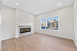 Move-In Ready | 2024 Build | East/West Facing | 1,580 SqFt | 3-Bedrooms | 2.5-Bathrooms | Incredible Living Space | Quartz Countertops | Stainless Steel Appliances | Beautiful Finishes | Open to Below Ceilings | Pot Lighting | Open Floor Plan | Electric Fireplace | Large Windows | Upper Level Laundry | Side Entry to Basement | Alley Access. Welcome to your stunning 2-storey home in Bayside with 3 bedrooms, 2.5 bathrooms and an expansive living space. The main and upper levels boast 1580 SqFt with an additional 701 SqFt in the unfinished basement. Open the front door to a foyer with views into the open concept main level. The front living room is framed with large windows beaming with morning sunlight through the East facing windows. The living room is paired with an electric fireplace adding both style and comfort to this space. The open floor plan compliments a smooth transition from living to dining. The kitchen is outfitted with ample cabinet storage, a bold and stylish black herringbone accent backsplash, quartz countertops, stainless steel appliances and a centre island with barstool seating. The kitchen is also includes a gas line to the stove! The kitchen has a pantry for dry goods storage too! Off the kitchen is a rear coat closet and back door that leads to the backyard and rear parking pad. The main level is complete with a 2pc bath. Upstairs holds 3 bedrooms and laundry. The primary bedroom is grand with a walk-in closet and a private 4pc ensuite bath with a walk-in shower and a double vanity. Bedrooms 2 & 3 are both a great size with closet storage and share the main 4pc bathroom with a tub/shower combo. The laundry is located on this upper level in a deep closet to not take away from any of your living space. Downstairs, the basement has a separate side entry and has rough-in plumbing! This space can be easily transformed to fit your family's needs. Outside is a great sized backyard with space for a deck and a rear detached double garage! Hurry and book your showing at this incredible family home today!