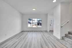 Welcome to 59 Baysprings Terrace, where modern comfort meets timeless design. These brand-new townhomes, built by Luxury Custom Builders, offer a range of thoughtfully designed layouts tailored for contemporary living. Step into a bright and open-concept main floor featuring luxury vinyl plank flooring that flows beautifully throughout the space. At the heart of the home is a gourmet kitchen with a large quartz island, sleek stainless steel appliances, and ample cabinetry—ideal for both entertaining and everyday family meals. A convenient half bath completes the main level. Upstairs, you’ll find three spacious bedrooms, each with walk-in closets and custom built-in shelving. The primary suite is a true retreat—large enough for a king-size bed and complete with a luxurious 5-piece ensuite, including dual sinks, a deep soaker tub, and a separate walk-in shower. A dedicated laundry area on this floor adds everyday convenience. The unfinished basement comes with roughed-in plumbing and awaits your personal vision—ask about available customization options! Enjoy a west-facing, fully fenced backyard with professional landscaping and access to a double detached garage. Located in a well-maintained, self-managed complex with low condo fees, this community offers a warm and welcoming atmosphere. Take advantage of the nearby waterfront trails, paddle-boarding, and winter skating/hockey on the Canals. Families will love the walkability to parks, playgrounds, Nose Creek School (K–4), and close proximity to shopping, dining, and essential services. Whether you’re seeking a spacious family layout or a more compact design, there’s a unit here to match your needs. Note: The Room Dimensions of each unit may vary as the measurements were taken from the builder blueprints. Book your private tour today