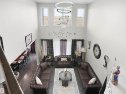 Welcome to this beautiful home in the family-friendly community of Dansereau Meadows. The main floor offers an inviting open-to-above living room with a cozy corner fireplace. The kitchen is designed to impress with a gas stove, stylish backsplash tiles, a massive island with undermount sink and a convenient corner pantry. The bright dining area features a striking feature wall and direct access to the fully landscaped and fenced backyard—perfect for entertaining. A 2-pc bath completes the main level. Upstairs, the primary bedroom is a true retreat with its own feature wall, walk-in closet and 4-pc ensuite with corner tub & standing shower. Two additional bedrooms, a 4-pc bath and laundry at upper level add to the functionality. The basement is open for your future development. Additional highlights include a mud room, humongous foyer double attached garage, and a fully fenced yard. This is the perfect combination of comfort, style and practicality—ready for your family to move in and enjoy!