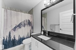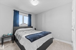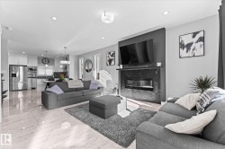 Welcome to this bright and beautifully upgraded 2 storey home in Forest Heights, a quiet and family-friendly neighbourhood surrounded by parks, trails, and ponds. Built in 2017, this home offers just under 1,600 sq ft of thoughtfully designed living space that feels open and inviting. The main floor features a modern kitchen with tall white cabinets, granite countertops, stainless steel appliances, and a large island with seating. The dining area is spacious, and the living room offers a cozy vibe with its sleek electric fireplace. Upstairs, the primary bedroom features a coffered ceiling, walk-in closet, and a double-sink ensuite. Two additional bedrooms and a full bathroom complete the upper level. The backyard is built for summer fun with a private deck, built-in bench seating, a custom playhouse, and a large concrete pad perfect for a fire pit or outdoor games. The unfinished basement offers potential for a rec room, gym, or playroom. Close to schools and easy access to major roads.