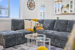 Beautiful 3 bedroom, 3 full bathroom corner home on a rare 24-pocket lot with exceptional layout and future suite potential. Featuring a wide foyer entry, open-to-above living room, and bright open floor plan with tile flooring on the main and a modern kitchen with pantry. The main floor includes a full bathroom and den/bedroom—perfect for guests or a home office. Upstairs offers 3 spacious bedrooms, including a primary suite with 5-piece ensuite and a huge walk-in closet, plus laundry and a full common bath. Separate side entrance to the unfinished basement, ideal for future development into a secondary suite. Double attached garage and excellent location near amenities.