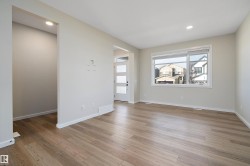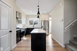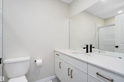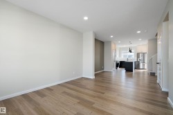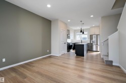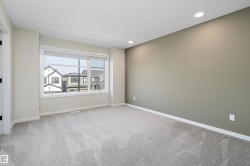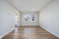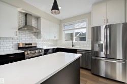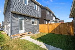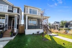 BETTER THAN NEW, this 1534 sq. ft. QUALITY BUILT "HOMES BY AVI, 2 STOREY, is ready for IMMEDIATE POSSESSION. GREAT ROOM floor plan featuring VINYL PLANK flooring, contemporary WHITE CABINETRY with upgraded STAINLESS APPLIANCES, including a GAS STOVE (220 is in for electric) and WATER/ICE feature on the REFRIDGERATOR plus QUARTZ COUNTERS and modern BRASS ACCENTS. A 2 piece bath & handy mud room off the back door leads to the SUNNY SOUTH YARD and DOUBLE DETACHED GARAGE that is insulated & drywalled! Up to a SPACIOUS PRIMARY that has a WALK IN CLOSET & 3 PIECE BATH, 2 additional bedrooms, a 4 piece main bath & CONVENIENT 2ND. FLOOR LAUNDRY. The basement features a SEPARATE ENTRANCE from outside and is ready for future development. The yard features low maintenance landscape and a brand new fence on one side! ELAN is a lovely new area in West BEAUMONT featuring PARKS, PLAYGROUNDS, WALKING TRAILS and wonderful GATHERING SPACES for FAMILIES and FRIENDS! It is PERFECT!
