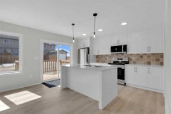 MOVE-IN READY! Discover this stunning 3-bedroom, 2.5-bathroom townhome in Aspen Lakes West, where contemporary design meets functional living. The open-concept main floor features a sleek kitchen with a center island, perfect for entertaining, flowing seamlessly into the dining and living areas. Upstairs, three spacious bedrooms await, including a luxurious primary suite with a walk-in closet and ensuite. With an unfinished basement for future customization and a prime location near parks, trails, and schools, this home is ideal for families or investors seeking long-term value in Blackfalds. PHOTOS ARE REPRESENTATIVE