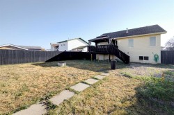 This fully developed family friendly Bi-Level offers a spacious & functional floor plan with 4 bedrooms & 3 bathrooms. The main floor is bright & inviting with vinyl flooring & porcelain tile throughout. This home is light and bright with large windows and vaulted ceilings offering plenty of natural light and modern feel has been created throughout the home with 3D decor wall, upgraded lighting, paint, flooring. The kitchen boosts plenty of cabinetry, stone counter tops, a large corner pantry, upgraded appliances, and dining area perfect for entertaining. Relax in the large master bedroom with double closets & a beautiful 4pc ensuite. One more good sized bedroom & 4pc bathroom completes the main level space. The fully finished basement offers a large family room, two more generously sized bedrooms, a 3pc bathroom, separate laundry room, and plenty of storage. Take the entertaining outside to the west facing deck complete with Gazebo overlooking the fully fenced yard with a fire-pit area, and large Shed 20 x 14 giving you plenty of extra outside storage. This home has an attached heated garage with lots of cabinetry storage and deep freezer. Located close to several walking paths and playgrounds. Its time for you to call Blackfalds your new home!