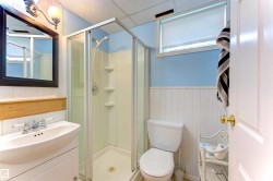 This home needs some TLC, but has a double car detached garage, and a massive fenced back yard, [with the lot being a huge 1302sq meters (14,014 sq ft.!)]. The garage is also oversized, at about 700 sq ft. [The typical double car garage is maybe 20' x 22', or a little over 400sq ft.]. There is also a large deck off the back of the house, with plenty of room for entertaining friends or family while having a BBQ. The main bath upstairs is also oversized, at 13' long by 5' wide! There are 3 bedrooms upstairs, and another bedroom and 3/4 bath downstairs. The home has a living room off the front entry, with an electric fireplace, and a wood stove downstairs in the family room. There is plenty of space for a growing family and with the fenced back yard, lots of room for pets or children to play. The home is also in a partial crescent, with very low traffic flow.