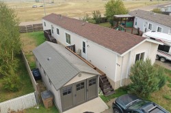 NO LOT RENT! THIS ONE HAS A GARAGE! Quality 1998 built Moduline Industries home has been upgraded in all the right places & leaving you some room in your budget too. Exterior upgrades are underway & will include new class 4 HAIL RESISTANT Shingles, soffits, eavestroughs, skylight, front windows, flashings & service to AC unit. 3 good sized bedrooms; primary can host a king bed with room to spare. 4 pc ensuite bath makes for easy mornings & getting everyone out the door. Some upgraded oak millwork, newer laminate flooring & fresh paint. The kitchen has more storage than you expect & a pantry too. Separate main floor laundry room means you can close the door & ignore the mess! Skirting has all been replaced in last 10 years with North side in 2025. Water heater replaced in 2022. Cool central air is a must have! Maintenance free 11 x 26 garage will fit a Ford Mustang or a workbench and all of your tools & projects; it's bigger than it looks & nearly impossible to find at this price point. The yard is fully fenced & very private, with no backyard neighbour & an opening back gate, large enough for parking your RV or toys. Take a look at what else is on the market under $250,000 & you'll find much older homes & a lot of work. With your design ideas & some simple cosmetic improvements, you can take this affordable property to the next level! No lot rent or occupancy restrictions. Take the virtual tour by clicking on the video icon.