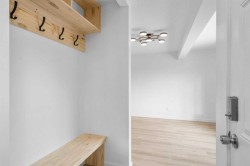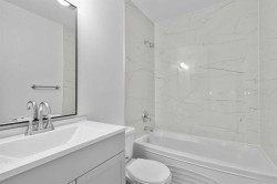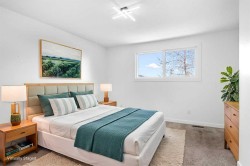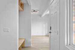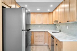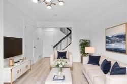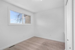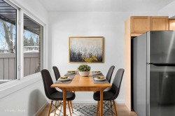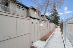Beautifully Renovated, Move - In Ready Townhome in a prime NW Calgary Location! This bright, modern 2-bedroom townhome has been fully updated throughout and offers exceptional value for first-time buyers or anyone ready to upgrade from apartment living. Set in a quiet, well-managed complex with low condo fees, this home features a private fenced yard, stylish interior renovations, and an unbeatable central NW Calgary location. You will love the fresh, contemporary updates: new flooring on the main level, knock-down ceilings, upgraded lighting, trim, paint, newer windows and doors, and a fully renovated 4-piece bathroom. The beautifully redesigned kitchen showcases shaker style maple cabinets, modern backsplash, Caesarstone counters, and new appliances, with a sunny dining nook overlooking the fenced yard - perfect for pets, gardening, or outdoor entertaining. The spacious, sunlit living room offers plenty of space for relaxation and gatherings. Convenient main-floor laundry includes a newer full-sized washer and dryer. A high-efficiency furnace and newer hot water tank help keep utility costs low and provide peace of mind. Upstairs, the generous primary bedroom comfortably fits a king bed and features his-and-hers closets plus a private balcony, ideal for morning coffee or evening fresh air. The second bedroom is large, with a double closet and built-in desk, perfect as a child’s room, home office, or guest suite. Plenty of storage throughout adds everyday practicality. Step outside to your sunny, private, fully fenced yard, beautifully landscaped with poured walkways and a patio, an excellent outdoor extension of your living space. Parking is effortless with an assigned stall just steps away and ample visitor parking throughout the complex. Pets are allowed with Board approval. The location is truly outstanding: St. Henry Elementary is right across the street, Dr. J.K. Mulloy School is just up the block, and Sir John A. MacDonald School is within walking distance. Minutes to Superstore, Deerfoot City, Nose Hill Park, the library, recreation centre, playgrounds, and major transit routes. Commuting is easy with quick access to Deerfoot Trail, Centre Street, 14th Street, and several nearby bus routes. This home blends modern style, affordability, and everyday convenience in a mature, family-friendly community. With immediate possession available, all that’s left to do is move in and enjoy. A must-see property, beautifully updated, affordable, and perfectly located in the heart of Huntington Hills!