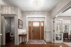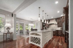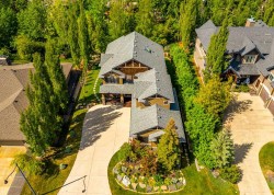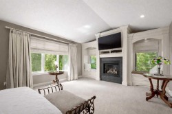 Welcome to this exquisite estate home, beautifully situated on a meticulously landscaped 1/4 acre lot in the prestigious enclave of Spring Valley Estates. Offering over 4,800 sq ft of professionally designed living space, this custom-crafted residence sits within a serene cul-de-sac community renowned for privacy, scenic walking trails, and breathtaking views. **Some images have been virtually/digitally staged to illustrate possible furnishings and layout.From the moment you enter, you'll be impressed by the home's refined elegance—exotic Cumaru hardwood floors, impeccable custom millwork, and built-in maple cabinetry throughout. The grand foyer, featuring a custom walk-in closet, flows seamlessly into an expansive, naturally bright family room framed by large windows that overlook the beautifully landscaped, lush backyard.The formal dining room is stunning, with a coffered ceiling and designer chandelier, while the main floor office offers an ideal, bright workspace. At the heart of the home is a gourmet kitchen designed for both everyday living and entertaining, boasting a 10’ granite island, double wall ovens, a VIKING 6-burner gas cooktop, hand-stained maple cabinetry, and a convenient walk-through butler’s pantry complete with a Sub-Zero refrigerator.Adjacent to the kitchen, the spacious family room features a welcoming fireplace, while a large mudroom/laundry area provides built-in lockers and abundant storage. Step outdoors to your private oasis—a spacious patio with gas hookup perfect for gatherings, overlooking a private, irrigated backyard highlighted by a newly constructed pergola, dedicated dog run, and convenient garage access.Upstairs, discover the luxurious primary suite spanning over 500 sq ft, complete with a fireplace, wet bar, built-in seating, and a lavish spa-inspired ensuite offering a double air jet tub, dual shower heads, marble vanities, a makeup station, and two custom walk-in closets. Two additional oversized bedrooms each include walk-in closets and ensuite baths. A large bonus room provides versatile space ideal for a media area, studio, or lounge.The fully finished basement enhances the luxury with two spacious bedrooms, each with walk-in closets, a 4-piece bath, wine cellar, generous recreation/games room with wet bar, and cozy in-floor heating throughout.Additional amenities include two high-efficiency furnaces, air conditioning, skylight, custom wall coverings, built-in surround sound, and designer lighting. The home is conveniently located near Calgary’s top-rated schools—including Webber Academy, Rundle College, Ernest Manning High School, and Ambrose University—and provides easy access to Westside Rec Centre, LRT, and Stoney Trail for effortless commuting and weekend adventures.This exceptional estate home represents timeless luxury, thoughtful design, and unmatched craftsmanship. Don’t miss your opportunity to reside in one of Calgary’s most sought-after communities.