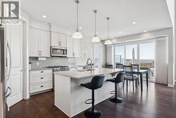 Cranston Ridge Living - Where Views, Nature, and Elegance Meet | Perched atop Cranston Ridge, this extraordinary estate home offers uninterrupted mountain vistas, breathtaking sunsets, and a lifestyle that blends luxury with nature. Set on a professionally landscaped, oversized lot, the backyard is a true private oasis, complete with lush flower gardens, a deck, and interlocking brick patio-perfect for family gatherings or summer entertaining. ~ Step inside to an incredible living room open to below, where soaring ceilings and massive two-story windows frame the panoramic views, letting natural light pour in and creating a dramatic, unforgettable focal point. The open-concept design seamlessly connects the living room, dining nook, kitchen, and home office, making daily living and entertaining effortless. ~ The kitchen is as functional as it is stunning, featuring full-height white cabinetry, a walkthrough pantry, and generous counter space. Rich millwork and elegant finishes flow throughout the home, reflecting the high standard of design and attention to detail. Upstairs, the primary suite is a serene retreat, with a spa-inspired ensuite complete with a skylight, making for a private space to unwind. Two additional second floor bedrooms provide comfort for family or guests. and the bonus room complete with built-in speakers will make entertaining a breeze! Downstairs, the fully finished basement adds two more spacious bedrooms and versatile living space. Further bonuses you won't want to miss? An enlarged double garage, full air-conditioning, underground irrigation, a built-in vacuum system, and more! Step outside and enjoy direct access to the Ridge pathways, taking you from your doorstep straight into nature in moments—perfect for walks, morning runs, or quiet reflection. ~ Cranston also offers excellent schools, convenient local shoppes, dining, and grocery, and with Seton as an adjacent urban district, you gain access to the YMCA, theatre, and South Health Cam pus hospital, blending suburban tranquility with modern urban amenities. ~ This home is more than just a residence-it's a statement of lifestyle, family, and success. From the meticulously designed interior to the serene backyard oasis and the dramatic, view-filled living room, every element celebrates both elegance anc connection to nature. Cranston Ridge living at its finest awaits! (id:27)