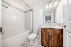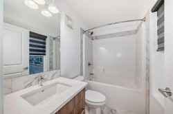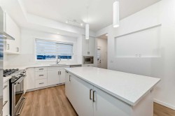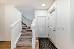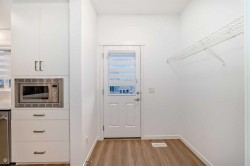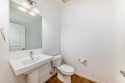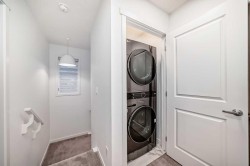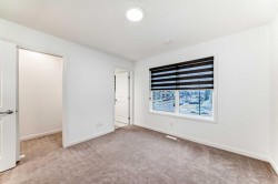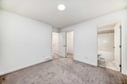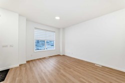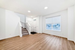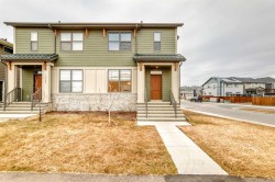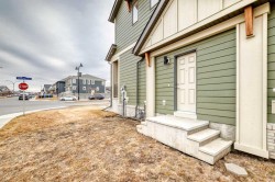 Discover exceptional comfort and modern style in this almost new semi-detached home, ideally positioned on a desirable corner lot in one of the city’s most sought-after lake communities. Immaculately maintained and barely lived in, this residence exudes a bright, fresh ambiance from the moment you step inside. Designed for today’s lifestyle, the open-concept main floor showcases an airy, contemporary palette complemented by expansive windows and thoughtfully curated finishes. Luxury vinyl plank flooring flows seamlessly from the spacious great room—with its oversized feature window—into the designated dining area and onward to the stunning chef-inspired kitchen. Here, a generous central island with quartz countertops anchors the space, paired with sleek stainless steel Kitchenaid appliances including a French-door refrigerator with ice and water, built-in microwave, dishwasher, an upgraded gas range and pull-out garbage for ease of convenience. The classic subway tile frames in the designer hood fan compliments the capped cabinetry and modern fixtures. The upper level features three spacious, sun-filled bedrooms—each offering a clean, minimalistic backdrop ready for your personal touch. The primary suite is a true retreat, complete with a 4-piece ensuite bathroom and a walk-in closet for added comfort and convenience. An additional 3-piece bathroom on this level provides thoughtful functionality for family members or guests. All bathrooms throughout the home highlight elegant quartz countertops, wood-grain vanities, curved shower rods and marble-style tile for a refined, cohesive look. A dedicated upstairs laundry room, complete with an LG ThinQ washer and dryer, enhances everyday convenience for busy families. Additional features include custom blinds on all windows and Carrier central air conditioning for year-round comfort. A separate side entrance with precast stairs adds flexibility and potential for future development, a home-based business, or multigenerational living. Durable Hardie Board siding enhances both style and longevity on this spacious corner lot. Located within a vibrant lake community, residents enjoy year-round access to bicycle and walking paths, beach, water activities, and a welcoming community atmosphere—while being just minutes from schools, shopping, and major commuter routes. Whether you're a first-time buyer, investor, or downsizer, this move-in-ready property offers exceptional value, modern design, and an unbeatable location. Don’t miss this rare opportunity to make it yours.