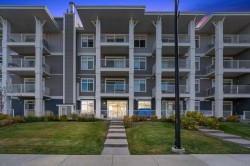 Experience the perfect blend of style, comfort, and convenience in this beautifully designed 2-bedroom, 2-bathroom ground-floor condo in Auburn Bay. Once a Logel Homes show suite, this home still feels brand new and offers a private walkout entrance directly to ground level—a rare feature that’s perfect for pet owners or anyone who loves easy, everyday access. Flooded with natural light, the spacious west-facing patio includes a gas line for your BBQ, making it ideal for outdoor dining and entertaining. Inside, the open-concept layout showcases thoughtful upgrades, including waterfall-edge quartz countertops on the kitchen island, full-height cabinetry with under-cabinet lighting, a built-in wall oven and microwave, electric cooktop, and luxury vinyl plank flooring throughout. The primary suite features a spa-inspired ensuite with dual sinks, a fully tiled shower, and a custom walk-through closet with built-ins. A second bedroom and full bath provide flexible space for guests or a home office. Enjoy year-round comfort with central A/C, titled underground parking, and a secure storage locker. Pets are welcome with no size or breed restrictions, and low condo fees include heat, water, and maintenance. Located in Calgary’s sought-after lake community, residents enjoy access to Auburn Bay’s private beach, clubhouse, and pathways—just minutes from shopping, restaurants, the South Health Campus, and the Brookfield YMCA. This is stylish, low-maintenance living at its finest—this is a must see!
