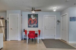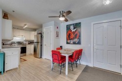 Welcome to Dana Village, where you can enjoy a 'turn key' lifestyle. Quick possession works on this preferred MAIN floor 55+ unit. Signal Hill offers easy access for commuting, LRT, parks and pathways and numerous amenities & services in this well established central community. Heated underground parking stall, carwash, workshop, weekly rides for shopping trips, pot lucks, social activities & exercising/recreation events. Gorgeous central dining hall for residents to enjoy. Covered balcony (west facing) steps out to the beautifully landscaped courtyard and grounds. Patio has a BBQ gas line, room for deck furniture, gardening and ample space for you to read, relax and repeat. Balcony storage room as well as secured caged storage in front of parking stall located near elevator. Unit has been lovingly maintained and updated: newer furnace, Central A/C, efficient Stainless Steel appliances, modern luxury vinyl plank flooring, high end kitchen faucet & bath/light fixtures. Versatile floor plan (>820 sq. ft.) features 2 LARGE Bedrooms, 3 piece Bathroom, In-suite laundry, full pantry and utility area. Decorated in a modern neutral colour palette. Single floor living, accessibility features to help with mobility ease. Another perk of main floor living is that you can have a dog or cat (board approval) & direct outside access from your balcony. Complex is well managed and ready for those seeking their new chapter in a dynamic, multi faceted setting. Don't miss this opportunity, call and view today!