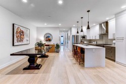 ** Open House Saturday February 21st from 12pm-2pm! ** Welcome to this exceptional detached 3-storey executive infill in Parkdale’s prestigious Golden Triangle, located just steps from the Bow River. Featuring 4 bedrooms, 4.5 bathrooms, and an ICF foundation. This executive home offers nearly 3,500 sq. ft. of beautifully designed living space with modern craftsmanship and timeless appeal. From the moment you arrive, mature landscaping and west-facing windows create stunning curb appeal while filling the home with natural light. Inside, soaring vaulted ceilings, glass and stainless-steel accents, and sleek contemporary millwork define the open, airy feel. The grand foyer opens to the second floor, showcasing a striking open-riser staircase with glass railing and a feature wall. White oak hardwood floors flow throughout the main level, leading into your custom chef’s kitchen. This impressive kitchen features sleek custom cabinetry, modern lighting, upgraded stainless-steel appliances, and a quartz waterfall island. The spacious dining area connects seamlessly to the living room, where oversized windows and a cozy gas fireplace provide the perfect space for entertaining or relaxing with family and friends. A bright main-floor office features a sliding barn door and a west-facing glass wall, making it ideal for a home office. Upstairs, the second-floor living space offers a sun-soaked loft with a gas fireplace and a multipurpose study nook. The second floor features two large bedrooms, each with double closets; the back bedroom has a private 4-piece ensuite, a massive laundry room, a 4-piece main bath, and a clever storage nook. The third floor is fully dedicated to the luxurious primary suite, a secluded retreat that will soon become your sanctuary space. This level provides large windows, a walk-through closet with custom built-ins, and a spa-inspired 5-piece ensuite featuring dual under-mount sinks, quartz counters, a freestanding soaker tub, and a fully tiled glass shower with a rain shower head. The fully developed basement extends the living space with high ceilings, roughed-in in-floor heating, a large rec/media room, a full wet bar with quartz counters, generous storage, and a fourth bedroom with easy access to a stylish 3-piece bathroom. Outside, the backyard offers a private retreat, including a spacious composite deck and a heated 2-car garage. You can also enjoy the front patio and the mid- to late-day sun, along with gemstone lights, year-round. This remarkable home delivers the perfect blend of luxury, functionality, and location and is just steps from the Bow River pathways, transportation, schools, off-leash parks, and playgrounds. Enjoy an easy 5-minute commute to the Foothills Medical Centre and 10 minutes to downtown. Don’t miss your chance to call this stunning Parkdale property home. Book your showing today!
