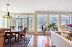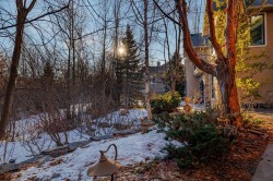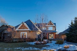 Nestled on a quiet, tree-lined street in the heart of prestigious Tanglewood, this stunning quality-built estate home offers timeless elegance, thoughtful design, and exceptional functionality for modern family living. From the moment you arrive, the home impresses with its welcoming presence, oversized double attached garage with ample storage, and comfort-enhancing features such as central air conditioning. Step inside to a bright and inviting main floor highlighted by a formal dining room just off the front entrance, complete with a beautiful built-in hutch—perfect for hosting elegant dinners or holiday gatherings. A dedicated main floor office with custom built-ins provides an ideal work-from-home space, while a convenient 2-piece powder room and main level laundry add everyday practicality. The heart of the home is the open-concept kitchen, living room, and eating nook. The kitchen is a chef’s dream, featuring stainless steel appliances, a gas range stove, granite countertops, a large central island, and a walk-in pantry. The adjoining eating nook is open and sun-filled, offering direct access to a sprawling back deck—perfect for morning coffee or summer entertaining. The living room is equally impressive with its spacious layout, abundant natural light, and a striking fireplace with stone surround and wooden mantle that anchors the space beautifully. Upstairs, a generous bonus room with custom built-ins offers incredible flexibility and can easily serve as a playroom, secondary office, or even an additional bedroom. The primary retreat is open, bright, and serene, complete with a walk-in closet featuring custom built-ins and a luxurious 5-piece ensuite. This spa-like bathroom includes a private water closet, jetted soaking tub, dual vanities, and a stand-alone shower. Two additional well-sized bedrooms share a 4-piece bathroom, creating a comfortable and functional upper level for family living. The fully developed walkout basement elevates this home even further. With high ceilings, in-floor heating throughout, and gorgeous custom built-ins, the expansive family room is perfect for relaxing or entertaining. A large games area, generous storage, and a guest bedroom with its own 4-piece ensuite provide exceptional versatility. Direct access to the lower-level patio leads to a private, treed backyard that is both sunny and serene—an ideal outdoor retreat. Close to schools, walking paths, the train station and all amenities this home is in the perfect location to meet all your needs! Surrounded by mature trees and offering outstanding privacy, this exceptional Tanglewood estate seamlessly blends luxury, comfort, and thoughtful design in one truly remarkable home.
