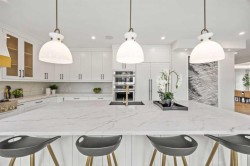 OPEN HOUSE 1pm-3pm Saturday /14 February . Brand-New 4900+ Sq Ft Custom Build in Varsity—Facing Green Space, Backing Treelined Pathways, and Built to the Highest Standards. This is the home Varsity has been waiting for — a fresh, full-scale luxury build on a flat, pie-shaped lot that faces onto open green space and backs directly onto the treelined pathway system. With over 4,900 sq ft, this home offers the perfect balance of thoughtful design, uncompromising finishes, and unbeatable location. From the moment you walk in, you feel the volume and elegance: 9’ ceilings on all three levels, wide-plank engineered hardwood floors, clean lines, custom feature walls, and natural light pouring in from oversized windows. The layout is ideal for family living, featuring 5 bedrooms (including 2 stunning primary suites), 4.5 spa-style bathrooms with heated floors, a private main-floor office, and an open-concept living/dining area built for entertaining. The heart of the home is the kitchen: JennAir appliances, a massive island, custom cabinetry, and direct access to a large deck and professionally landscaped backyard. Upstairs, a serene primary retreat features a steam shower, walk-in closet, and upper laundry. The fully finished lower level includes a home theatre, wet bar, bedroom + bath, and a second laundry room. Luxury features include: 200-amp electrical service, central A/C, built-in speakers, security camera system, heated double garage with epoxy floors and EV charger, irrigation system, and a fully fenced yard. Every detail was chosen for comfort, performance, and long-term living. Located in the heart of Varsity Village, you're steps from schools of all levels, the University of Calgary, and the shops and cafes of University District. Homes like this rarely come available—especially brand new and on a lot like this. Book your private tour today and experience the finest new construction Varsity has to offer.