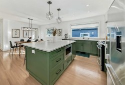 Welcome home to this thoughtfully renovated Wildwood bungalow, ideally located on a quiet, tree-lined street in one of Calgary’s most established and sought-after inner-city communities. Extensively renovated between 2019 and 2022 and designed by Amanda Hamilton Interiors, this home blends timeless design with modern functionality. The main floor is bright, open, and welcoming, thoughtfully designed for both everyday living and effortless entertaining. The chef-inspired kitchen is the heart of the home, featuring quartz countertops, custom full-height cabinetry, stainless steel appliances, a gas range, and carefully selected modern fixtures and finishes. The seamless connection between the kitchen, dining, and living areas creates a warm, inviting space ideal for hosting family and friends or enjoying quiet evenings at home. The primary suite is a true retreat, offering a spacious walk-in closet and a spa-inspired ensuite complete with dual vanities, a walk-in shower, heated floors, and a steam shower. An additional main-floor bedroom and full bathroom provide flexibility for guests, children, or a home office. The fully developed basement expands the living space even further with a generous media and recreation area, two additional bedrooms, a full bathroom, and a dedicated laundry area—perfect for families or multi-generational living. Behind the scenes, this home has been comprehensively upgraded to provide long-term peace of mind. Renovations include all new electrical and plumbing, upgraded HVAC ducting, furnace and hot water tank, enhanced insulation throughout (including insulated rim joists), new vapour barrier, and new drywall on both the main floor and basement. Original hardwood floors have been refinished and paired with basement carpet. Additional comfort features include heated floors in all three bathrooms, air conditioning, air sanitation purification system. The exterior has been fully refreshed with Hardie board siding, new windows and doors, a new roof, eaves, soffits, and fascia, enhancing both curb appeal and durability. The backyard is designed for enjoyment and entertaining, featuring a large deck and fire pit, while the oversized 26’ x 22’ double detached insulated garage offers ample storage and parking space. Within walking distance to Wildwood Elementary School, soccer fields, tennis and pickleball courts, a hockey rink, playground, Wildwood Playschool, and a community garden, this neighbourhood is ideal for active lifestyles. Enjoy quick access to Edworthy Park’s extensive pathways and green spaces, and easy connections to Bow Trail, placing downtown Calgary just minutes away.This exceptional home offers the rare combination of thoughtful design, extensive renovations, and an unbeatable inner-city location—perfect for those seeking quality, comfort, and community. Book your showing today!