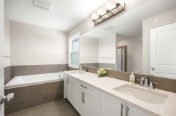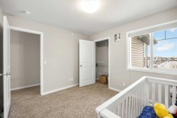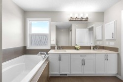 Beautifully designed for comfort and modern family living, this spacious 4-bedroom, 2.5-bath home in the family-friendly community of Livingston offers over 2,240 sqft of bright, open-concept space with a Double Attached Garage, an east-facing backyard, and a welcoming front view of a community playground—perfect for families.You’re welcomed by a warm Foyer and 9-ft ceilings throughout the main floor. A convenient Main Floor Bedroom adds flexibility for guests or a home office. The heart of the home features gleaming hardwood flooring and an east-facing open layout that brings in abundant natural light. The well-appointed Kitchen includes a centre island, granite countertops, ample white cabinetry, stainless steel appliances, and a Walk-In Pantry for exceptional storage. The Living Room offers a cozy gas fireplace with mantle and a large window overlooking the yard, while the spacious Dining Room easily accommodates an eight-person dining table. Step outside to the deck and sunny east-facing backyard, complete with a generous concrete patio (31’5” x 25’9”)—ideal for kids’ play, gatherings, or summer entertaining. This level is finished with a Powder Room.On the upper level, a large Bonus Room with vaulted ceiling provides the perfect space for family movie nights or relaxation. The spacious Primary suite features a large Walk-In Closet and a spa-inspired 5-piece ensuite with double vanity, soaker tub, and separate shower. Two additional well-sized Bedrooms, a 4-piece Bath, and an upper Laundry Room with closet organizer complete the upper floor.The unfinished Basement offers two large windows and excellent potential for future development.Located in the sought-after community of Livingston, residents enjoy parks, pathways, playgrounds, and a vibrant community hub, with easy access to major roadways, shopping, dining, and future amenities—perfectly combining convenience and family-friendly living.