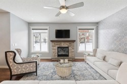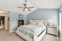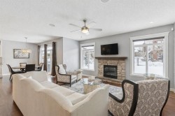 Discover this exceptional private lake-access estate property, a custom creation by Morrison Homes, offering over 4,100 sq. ft. of upgraded, air-conditioned luxury. Every detail has been thoughtfully designed, delivering an impressive blend of comfort, craftsmanship, and executive elegance.From the striking curb appeal—featuring architectural rooflines, a 30' x 22' triple attached garage, stone accents, Hardie Board siding, and a covered entry—to the expansive windows and 9' main-floor ceilings, this home presents beautiful views of mature trees and the surrounding lake community.The chef-inspired kitchen is built for those who love to cook and entertain. It showcases granite countertops, full-height custom shaker cabinetry, stainless steel appliances including a gas range, a large central island with seating, an undermount sink, recessed lighting, a full pantry, and a convenient walk-through butler’s pantry. The bright breakfast nook overlooks the beautifully designed, zero-maintenance backyard, complete with irrigation and direct access to a lake pathway leading to your private dock—a rare and highly desirable feature.The main level also offers a spacious family room with a stone-surround gas fireplace, a semi-formal dining room with French doors, a large front foyer, and durable tile flooring that carries through to the garage entry. Enjoy Sonos built-in audio on every level and a total of three fireplaces throughout the home.Upstairs, the open-railing staircase leads to a unique and versatile layout. In addition to three spacious bedrooms, you’ll find a bonus room and an executive office—the office could easily serve as a fourth upper-level bedroom if desired.The primary suite is truly a retreat, highlighted by vaulted ceilings, a two-sided fireplace, and generous natural light. The ensuite includes dual sinks, an oversized glass shower, an air-jet soaker tub, and a private water closet. The showstopper, however, is the spectacular walk-in closet—truly a dream space for anyone who appreciates luxury organization and storage.The fully finished basement extends the living space with 8'7" ceilings, a large games area, a second family room with a cozy corner fireplace, a full bathroom, a spacious bedroom with a walk-in closet, oversized windows, and abundant storage.With maintenance-free landscaping, lake pathway access, and a private dock, this home is perfectly designed for year-round enjoyment. Move in and begin living the lake lifestyle this summer. Contact your favorite REALTOR® to schedule your private viewing today!