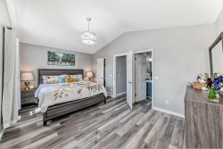 **OPEN HOUSE SUN Jan 11th 2-4pm** Beautifully Renovated Home with Walkout Basement & Serene Nature Views. Welcome to this stunning, fully updated 4 bedroom home featuring a finished walkout basement, ideally situated on a quiet street in a sought-after neighbourhood. From the moment you arrive, you’ll notice the thoughtful upgrades and immaculate, move-in-ready condition of this impressive property. Step inside to a bright, vaulted foyer that opens into a spacious living room with a cozy gas fireplace—perfect for relaxing evenings at home. The show-stopping kitchen is a chef’s dream, complete with quartz countertops, a central island, brand-new stainless steel appliances, a new pantry, and plenty of workspace. A newly added powder room just off the kitchen adds extra convenience. The adjacent dining area flows seamlessly onto a large deck that overlooks the expansive backyard and a peaceful nature reserve—ideal for entertaining or simply enjoying the outdoors. Upstairs, the primary suite features oversized windows, a walk-in closet, and a refreshed ensuite with a new vanity and toilet. Two additional generously sized bedrooms and a beautifully updated 4-piece bathroom complete the upper floor. The finished walkout basement offers a massive bedroom. It is large enough to have a separate living area within the bedroom which also includes a fireplace. The spacious brand new renovated bathroom includes a terrific corner shower and vanity. The large laundry room has private access from both the upper level and basement level. Step outside to the full-width concrete patio that opens to a private, fully fenced backyard—perfect for pets, kids, or quiet relaxation. Recent upgrades include: New lighting, baseboards, railings, paint, flooring, vanities, toilets, and faucets throughout Exterior updates: new shingles, siding, eavestroughs, and fresh exterior paint. Prime location: Quick access to both Stoney Trail and Deerfoot Trail, and close to multiple schools—two public, two separate, and one high school. This is truly a turnkey home that blends modern updates with natural beauty and practical living. Don’t miss out—schedule your private showing today!
