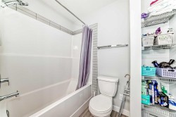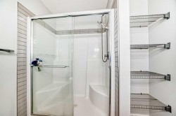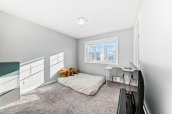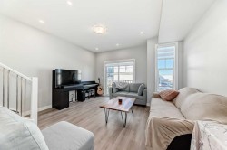 Welcome to this Verona West townhome by Trico Homes known for their built quality. This is the largest size model backing into the ravine, and not directly facing any unit with its lovely balcony in the front. This home has been very well cared for by their owners since day 1. Recreation / family room right on the entry (main) level, with balcony / deck that takes you directly to the breathtaking ravine right behind. This versatile space with a walk-in closet can be easily turned into your 3rd bedroom as well. One level up, you'll find the inviting floor plan with nine foot ceiling. You won't miss the upscale kitchen loaded with stainless steel appliances, elegantly finished cabinets flushed to the top, upgraded range hood and kitchen sink, built in microwave, and a massive ten foot central island - literally the centre piece of this home. Separate dining and living room with their own windows / balcony complete this very functional level, along with a half bath. Elegance continues with upgraded wood railing and metal spindles lining the stairs leading up to your private top floor with laundry, and TWO ENSUITES!!, each with its own full bath with vanity upgraded to comfort height, and walk-in closet. Don't forget, you also have the basement as your additional storage. It is not short of natural sunlight with two big windows. The attached single garage with a full driveway ensures you have space for your parking needs. Landscaping and snow removal are taken care of in this complex, allowing you to spend more time enjoying the convenience and nature around you. Quick access to roadways such as Stoney Trail, Shaganappi Trail, Beddington Trail take you to many parts of Calgary easily. If you prefer commuting on public transport, bus station is a short 7 minutes walk and the bus takes you to Brentwood c-train station in less than 30 minutes. Enjoy walking around the community? You have many reasons to. Besides the ravine that sits right behind your future home, restaurants, bubble tea, and medical clinic etc. are a mere block away. Walmart is just across the street, along with the future Symons valley Centre under development (city library and bus terminal hub). Other upgrades include gas line and air conditioner rough in's, Book an appointment and see this beauty for yourself!