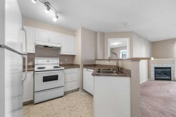 Are you looking for a TOP-FLOOR condo with 2 BEDROOMS, 2 FULL BATHROOMS, IN-UNIT LAUNDRY and UNDERGROUND PARKING? Are you ready to purchase your FIRST HOME, or looking for a great 'LOCK-AND-LEAVE' property that will allow you to travel more? How about a condo that is close to Stoney and Deerfoot for a quick commute to work, or quick to the airport for your vacation time? Come see 1410 - 17 Country Village Bay. This PENTHOUSE unit is quieter than many condos because there is no one above you but the birds in the sky. With HEATED UNDERGROUND PARKING, your car will thank you, and you will NEVER HAVE TO SCRAPE ICE off your car in the morning. Any mobility concerns? Step out of your car and you will quickly be in the ELEVATOR to the fourth floor, and into your SINGLE-LEVEL condo without navigating one single stair! How about someone else cutting the grass for you and pushing the snow off the sidewalks? The CONDO FEES are LOADED WITH VALUE - INCLUDING ALL UTILITIES - GAS (For Fireplace and BBQ), HEAT, ELECTRICITY, WATER, SEWER, TRASH, HOA Fee for the POND AREA, plus STRUCTURAL INSURANCE! So many amenities within a very short distance. Close to Sobeys, Superstore, and much more! How would you like to start your day? Should you walk to Tim Horton's for a coffee, take the dog for a lap around the pond, or visit Vivo Recreation Centre for a morning workout? You could simply stay inside and enjoy the tranquility of your new home. This condo has a GREAT FLOORPLAN, with the bedrooms on opposite sides of the unit, each with its own bathroom. The kitchen, eating area, and living room are VERY OPEN. There's plenty of NATURAL LIGHT from the large sliding doors leading to your COVERED DECK (with gas line for your BBQ, vinyl flooring and aluminum railing). The deck looks out onto MATURE TREES and OPEN GREEN SPACE between the buildings! The kitchen has CRISP WHITE CABINETS and a PENINSULA with a RAISED EATING BAR! The living room has a corner gas fireplace to keep you cozy all year round! The PRIMARY BEDROOM has a WALKTHROUGH CLOSET area, plus a FULL ENSUITE BATHROOM! The IN-UNIT LAUNDRY doubles as a spacious storage room. When you have family visiting overnight, they will love having the GUEST ROOM and SECOND FULL BATHROOM to themselves. Don't miss this opportunity... BOOK YOUR SHOWING TODAY :)