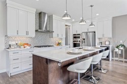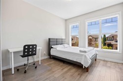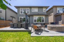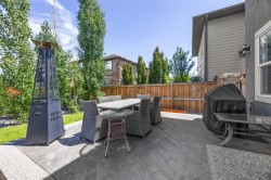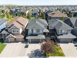 Welcome to 144 Legacy Mount SE an exquisite 2824 sq. ft. detached home in one of Calgary’s most sought-after and family-friendly communities: Legacy. Ideally located across from prestigious Legacy Estate Homes and backing onto a tranquil green space with a playground, this stunning property seamlessly blends elegant design, upscale finishes, and everyday functionality to create the perfect forever home. Step inside and experience a true sense of grandeur. From the moment you enter, you're greeted by 9-foot ceilings, upgraded 8-foot doors, and a show-stopping curved staircase with stylish railings and an open-to-below layout, all illuminated by an abundance of natural light streaming through oversized windows. Throughout the home, hardwood and tile flooring ensure a carpet-free, low-maintenance lifestyle with timeless appeal. At the heart of the home is a two-toned designer kitchen that’s both beautiful and functional. It features ceiling-height white cabinetry, quartz countertops, under-cabinet lighting, and premium appliances including a gas stove, chimney-style hood fan, wine fridge, and a fridge with a water line. Thoughtful touches like hidden sponge storage, a built-in soap dispenser, and strategically placed electrical outlets highlight the attention to detail. The massive central island and walk-in pantry provide exceptional storage and prep space, while the kitchen flows effortlessly into the dining and living areas, offering sweeping views of your private backyard oasis. The cozy living room is anchored by a modern gas fireplace and features built-in speakers, perfect for relaxed nights or entertaining. Step outside to enjoy your 2-tiered cement deck with a BBQ gas line—the ultimate summer setup. Finishing off the main level is a bright home office with double French doors, ideal for remote work, and a spacious mudroom with built-in lockers, leading to the finished double garage, complete with smart storage solutions. Upstairs, a central bonus room smartly separates the luxurious primary retreat from two generously sized bedrooms, offering optimal privacy. The primary suite is a true retreat with a spa-like ensuite featuring dual vanities, ample counter space, medicine cabinet, soaker tub, stand-up shower with built-in bench and dual nooks, a private water closet, and extra linen storage. The expansive walk-in closet comes fully outfitted with custom built-ins and drawers. The two secondary bedrooms each offer walk-in closets with windows and share a beautifully appointed 4-piece bathroom. The upper-level laundry room adds everyday convenience with its utility sink, abundant counter space, lower cabinetry, and ample hanging options. Additional upgrades that are worth noting are central air conditioning, Hunter Douglas Window Coverings Throughout, Built-in Speakers, Ethernet Cat6 Cable in Every Room and Smartphone-Controlled Underground Irrigation System. Don’t miss your opportunity to own this elegant and highly upgraded home!