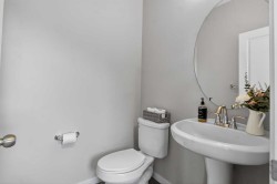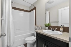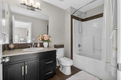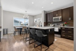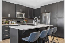 Step into lake community living with this beautifully designed two-storey home at 146 Marquis Common SE in Mahogany, offering 3 spacious bedrooms, 2.5 bathrooms, and over 1,651 sq. ft. of thoughtfully planned space. The main floor welcomes you with a bright south-facing living room and cozy fireplace, soaring 9-foot ceilings, and a chef-inspired kitchen with quartz countertops, oversized island, and built-in desk. Upstairs, you’ll find a bonus room perfect for family nights, along with a primary suite featuring a walk-in closet and 4-piece ensuite, completed by another two good-sized bedrooms. The unfinished basement provides endless potential for customization. The house comes with newly-built double garage . With charming curb appeal, a welcoming front porch, and access to Mahogany’s exclusive lake and beach club amenities, this home offers the perfect blend of modern comfort and recreational lifestyle. Located close to schools, playgrounds, shopping, and easy access to 52nd Street and Stoney Trail, this property is ideal for families, professionals, or investors seeking value in one of Calgary’s most desirable communities. Don’t miss your chance to own in Mahogany—book your private showing today and make 146 Marquis Common SE your new home!