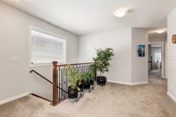 Immaculate Upgraded Home in the Prestigious Community of Cougar Ridge. Welcome to this turn-key, meticulously maintained 2-storey family home nestled in the highly sought-after community of Cougar Ridge. Exuding elegance and comfort, this 3-bedroom, 2.5-bathroom residence is the epitome of modern family living—boasting exceptional upgrades and an unbeatable location just steps from WinSport/C.O.P, scenic trails, parks, and top-rated schools. As you step inside, you’re greeted by a bright and airy open-concept layout, enhanced by soaring 9ft ceilings and stunning white oak engineered hardwood flooring that flows seamlessly throughout the main level. The upgraded knock-down textured ceiling, along with all new baseboards, casing, and carpeting throughout, further elevate the home’s refined aesthetic. Perfect for entertaining, the formal dining room is conveniently located at the front of the home, while the heart of the home lies in the spacious living room featuring a dramatic floor-to-ceiling brick fireplace. The gourmet kitchen is a chef’s dream, complete with stainless steel appliance package, upgraded granite countertops, and a generous nook that leads to your private outdoor oasis. Enjoy summer evenings on the expansive, upgraded deck—ideal for relaxing or hosting guests. Thoughtfully designed, the main floor also includes a stylish half-bathroom and a functional mudroom with direct access to the front-attached garage. Upstairs, a cozy bonus room—currently used as a fourth bedroom—adds valuable flexible space for your family’s needs. The luxurious primary retreat offers a spacious walk-in closet and a private ensuite with a walk-in shower. Two additional generously sized bedrooms and a well-appointed 3-piece bathroom complete the upper level. The basement remains undeveloped, providing endless possibilities for customization to suit your lifestyle. With recent roof shingles replaced and an array of thoughtful upgrades throughout, this exceptional home is move-in ready.