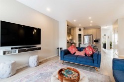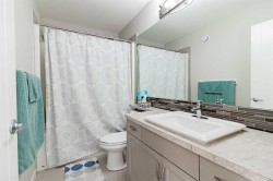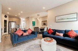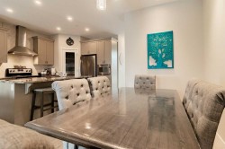 *Open House Sunday, January 4th, 2026 12 – 3 PM & Sunday, January 10th & 11th, 2026 12 – 3 PM** Wow! Unbeatable value in the new Calgary North desirable community of Livingston! Built in 2016 this bright naturally lit south facing former Morrison Homes Show Home ticks all the boxes! 3 Large bedrooms & 2 full washrooms upstairs, a 4th Bedroom & open concept living area with a powder room on the main floor gives you enough room to not only to enjoy but to grow in as well! From modern stainless steel Energy Efficient® appliances & fixtures all through out the house has been thoughtfully laid out & planned for. As you walk through the front doors you will find ample space to take a moment to take your coats & shoes off & place them in the closet to the left. On your right you will find an additional bedroom, currently being used as a library. Walk past the stairs down the hallway to your large open concept kitchen finished with modern stainless-steel appliances, Breakfast Island & own dedicated pantry! The stove already has a gas line pre-installed as well! Here you will also find your dining area with a beautiful modern chandelier & a cozy family room with its own gas fireplace finished with stone. You can cook dinner while the kids watch some TV or finish their home work! Further ahead you will have access to your backyard with a large deck, concrete pad for your BBQ & concrete pathway to your oversized (22’ x 24’) double detached garage. Upstairs you have your large master bed which comes with its own walk-in closet & primary 3-piece ensuite! With views of the lake in the back this room is a perfect retreat from your hectic day! There are two additional large size rooms, both with their own closets & a second 4-piece bathroom upstairs as well. All fittings are Energy Star® & have a sleek modern finish to make them standout! The basement is currently undeveloped & used for recreation. The furnace is high efficiency & there is even a Heat Recovery Ventilator to recover heat on the cold nights & to keep the house cool during the summer there is even central air conditioning! This space is waiting your touch to be developed further even potentially a suite if required, because this is not a zero-lot property & have access from both sides of the unit. The location of this property is priceless, with it being within walking distance of the Livingston Community Center where you will find skate parks, splash pools, tennis courts walking paths, kid’s playgrounds, community hall, theater, private schools & so much more! Upgrades are endless – 9 Ft Ceilings on the main floor and basement, Granite counter tops, oversize kitchen sink, Sprinkler system through out the whole house, oversize fridge, built in closet shelving & much more! Roof replaced with Class 4 Asphalt Shingles October 2025 & Siding replaced November 2024. This home needs nothing & is perfect for first time buyers or investors alike! Don’t miss the opportunity to view this gem & book your showing today!