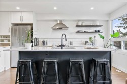 If entertaining under the city skyline is your vibe, this home delivers the ultimate rooftop experience. Tucked away in Calgary’s popular inner-city community of Bankview, this fully renovated home features a massive 450 sq. ft. private rooftop patio with panoramic views that stretch across downtown. Whether you’re hosting a summer soirée, firing up the BBQ, enjoying cocktails at golden hour, or soaking up the sun on lazy afternoons, this rooftop is truly a showstopper. It’s the kind of space that makes every gathering unforgettable. Inside, you’ll find a modern, stylish layout with 3 bedrooms and 2 fully updated bathrooms, perfect for roommates, a home office, or a creative studio. The open-concept kitchen is designed for connection, with quartz countertops, stainless steel appliances, and island seating that flows into the bright, airy living room complete with an electric fireplace and chic feature wall. The upper level connects two bedrooms and a full bath directly to that private rooftop retreat, while the main floor offers another bedroom/office, a second full bath, and a convenient mudroom. The walkout basement opens into a landscaped yard with mature fruit trees—ideal for garden parties or peaceful downtime. A heated garage adds even more versatility, whether you want a gym, studio, or workspace. Additional features are 2 washer/dryer hookups on the main floor and walk out basement with Beyond your front door, the best of Calgary awaits. Nestled between the buzz of 17th Avenue and the vibrant Marda Loop, you’re only steps from trendy restaurants, coffee shops, nightlife, shopping, and green spaces. Add in quick access to downtown, bike paths, and transit, and you have the perfect mix of excitement and convenience. With 1,437.42sq. ft. of finished living space plus a heated garage and rooftop retreat, this home is all about lifestyle, energy, and connection. If you’re ready for the ultimate blend of modern design and outdoor living, your rooftop oasis in the city is waiting!