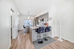 Modern Sophistication, Rare Privacy, & Exceptional Value in Copperfield. Welcome to 240 Copperleaf Way SE, a meticulously maintained 3-bedroom townhouse that perfectly balances premium positioning with contemporary design.A Rare Sense of Privacy: Uniquely situated within the complex, this home offers a superior level of privacy with no direct views of neighboring units. Instead, the property overlooks detached residences with a significant setback, providing an open, residential feel and an abundance of natural light.Designed for Lifestyle: Step inside to a bright, open-concept main floor defined by soaring 9-foot ceilings that amplify the sense of space. The stylish kitchen, featuring sleek finishes and a central breakfast bar, flows effortlessly into airy dining and living areas—perfect for both daily life and sophisticated entertaining.Exceptional Features:• Ultimate Parking: Ground-level tandem garage with extra storage, complemented by a full-length driveway for a rare 3rd dedicated parking spot.• Convenience: The upper level features a sun-drenched primary suite with a 4-piece ensuite and walk-in closet, plus two additional bedrooms and top-floor laundry.• Low Monthly Costs: Benefit from low condo fees that ensure a hassle-free, low-maintenance lifestyle without breaking the budget.Unbeatable Walkability:• Copperfield School (K-5): 4-minute walk (290m).• St. Isabella (K-9): 12-minute walk (850m).• Recreation: Steps from scenic Copper Pond pathways and playgrounds.With quick access to 52nd St and Stoney Trail, this home offers suburban tranquility with urban accessibility. Low-maintenance living at its finest—book your private showing today!