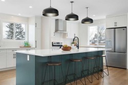 Welcome to this beautifully transformed 5-bedroom, 4-bathroom home offering over 2,650 sq ft of thoughtfully designed living space. Tucked away on one of Marlborough Park’s quietest cul-de-sacs, the property backs onto an open green space and is ideally located just minutes from schools, CTrain stations, shopping, dining, and major commuter routes.The main floor spans over 800 sq ft and showcases a bright, open-concept layout featuring a spacious living room, dining area, and a chef-inspired kitchen anchored by an impressive 10' × 5' island with extensive storage. The adjacent family room blends modern comfort with character, highlighted by a refreshed original brick feature wall. South- and west-facing windows flood the home with natural light from morning through evening.With five bedrooms and four full bathrooms, the layout is exceptionally well suited for families of all sizes. The upper level offers three bedrooms, including a generous primary retreat complete with an ensuite and dual closets, along with two additional bedrooms and a full bathroom—all enjoying peaceful park views. A fourth bedroom on the main floor, paired with a 3-piece bath and laundry, is ideal for guests or multi-generational living. The fully developed lower level features a large fifth bedroom, an additional full bathroom, and over 700 sq ft of versatile recreation or family space.Notable upgrades include a high-efficiency furnace, a large hot water tank, and smart-home features such as Ring cameras, Wi-Fi light switches, smart locks, and thermostats—delivering comfort, efficiency, and peace of mind.Outdoor living is equally impressive, with a solid, well-built deck off the kitchen, a concrete patio, a private yard, and a newly installed fence accented by a decorative rock area—perfectly suited for a firepit or outdoor gathering space.A rare opportunity to own a home renovated with purpose, quality, and craftsmanship—this is Marlborough Park living at its finest.