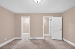 Welcome to this stunning family home in the heart of Mahogany! Beautifully designed and meticulously maintained, this property offers an open-concept main floor with hardwood flooring, a spacious kitchen featuring granite countertops, a large island, pantry, garburator, and stainless-steel appliances including a stove, oven, fridge, dishwasher, and microwave. The main level also includes a dining area, bright living space, 2-piece bath, laundry room, mudroom, and a triple car attached front garage.Upstairs, enjoy a large family room with elegant tray ceilings, three generous bedrooms, a 5-piece main bath, upper laundry, and a luxurious primary suite with a walk-in closet and a spa-inspired 5-piece ensuite complete with heated floors.The fully finished basement provides even more space with a rec room, bedroom, office/library, 4-piece bath, utility room, and walk-in closet.Outside features low-maintenance landscaping with artificial turf and exposed aggregate in both the front and back yards, a 3-car driveway, and electric outlets under the back patio—perfect for outdoor entertaining. Central A/C completes this exceptional home that combines luxury, comfort, and functionality—ready for your family to move in and enjoy!