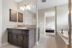 Welcome to this beautiful Mahogany home, thoughtfully designed for exceptional family living and effortless outdoor enjoyment. Truly move-in ready and ideally positioned just steps from top-rated schools, parks, tranquil wetlands, and Mahogany’s highly sought-after lake and beach amenities—placing lifestyle and convenience at the forefront.Backing directly onto a scenic pathway, the backyard offers a rare extension of your living space, perfect for biking, walking, and daily outdoor adventures. Inside, recently updated luxury vinyl plank flooring spans the main level, guiding you into a stunning chef-inspired kitchen designed to impress. Featuring a gas range, sleek stainless steel hood fan, built-in wall oven, quartz countertops, and generous prep space, this kitchen seamlessly blends style and function for both entertaining and everyday life.Upstairs, three spacious bedrooms are complemented by a bright and versatile bonus room—ideal for family movie nights, a playroom, home office, or even an additional bedroom, as currently used. The primary bedroom is a private retreat, complete with dual walk-in closets and a spa-inspired ensuite featuring double vanities.The fully finished basement further enhances the home’s flexibility, offering a large recreation room, an additional bedroom, and a full bathroom—perfect for guests, teens, or extended family.Step outside to your own backyard oasis, featuring a cedar deck with gas line for BBQ, a paved stone patio, custom tree lighting, and a designated area ready for a future hot tub. Designed for both entertaining and relaxation, this outdoor space is ideal for creating lasting family memories.Additional highlights include central air conditioning, a heated garage, a newer roof, newer hot water tank, Hunter Douglas blinds throughout, and a modern 5-zone irrigation system conveniently controlled from your phone. With schools, amenities, and Mahogany’s vibrant community offerings all within walking distance, this home delivers a rare combination of luxury, location, and family-focused living.