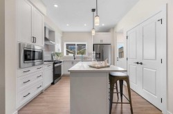 ** Brand New, Move in Ready Home built by Genesis Homes with a LEGAL 2 Bedroom Basement Suite ** The Amber | Stunning Open Floor Plan | Top of the Line Finishes | Sparkling Kitchen | Quartz Countertops | Stainless Steel Appliances | Kitchen Island | Barstool Seating | Pantry | 50" Electric Fireplace | Wide Plank LVP Flooring | Recessed Lighting | Expansive Living Space | Main Level Flex Room | Upper Level Bonus Room | Upper Level Laundry | Totaling 5 Bedrooms & 3.5 Bathrooms | Legal 2 Bedroom Basement Suite | Separate Entry | Separate Laundry | 9Ft Basement Ceilings | Great Backyard | Double Detached Garage | Alley Access | Steps Away from the Future Park. Welcome to your brand new 2-storey family home boasting 1,610 SqFt throughout the main and upper levels with an additional 747SqFt legal 2 bedroom basement suite. Step inside to a foyer with open to below ceiling and views into the open floor plan main level. This home was designed with style and comfort at the forefront; wide plank LVP flooring, large windows, recessed lighting, high ceilings and more! The front flex room is ready for anyone with a work-from-home lifestyle or can easily be used as a day seating entertainment room. The great room is both spacious and comfortable plus has a stylish flare of a 50" electric fireplace. Next are the kitchen, family and dining rooms. The kitchen is outfitted with a sparkling quartz countertop, stainless steel appliances, ample cabinet space and a centre island with barstool seating. The dedicated dining room is ready for you to enjoy all your family meals. At the rear of the home is a mud room with closet storage and a door to your back yard and rear double detached garage. The main level is complete with a 2pc bath. Upstairs you'll find 3 sizeable bedrooms all with wide plank LVP flooring. The primary bedroom has its very own 3pc ensuite bath and a walk-in closet. Bedrooms 2 & 3 share the 4pc bath with a tub/shower combo. The upper level hall laundry is every home owner's dream as its located steps away from all bedrooms! Downstairs, the LEGAL 2 bedroom basement suite has a separate entry and its own laundry facility making it a completely independent level to this home. This is great as a mortgage helper or for extended family. The basement has 2 sizeable bedrooms, each with great closet space. The open floor plan kitchen and rec room provide flexibility for living and dining. The kitchen is outfitted with quartz countertops, stainless steel appliances and full height cabinets. The 4pc bath on this level has a tub/shower combo and single vanity. Outside is a great backyard and rear double detached garage with alley access. Hurry and book a showing at this gorgeous brand new Genesis home today!