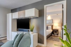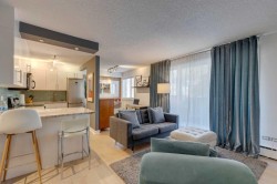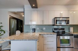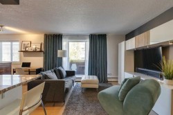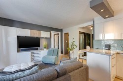 Welcome to The Modella, a charming boutique building tucked away on a quiet, tree-lined street in the heart of Lower Mount Royal, one of Calgary’s most desirable inner-city communities. This beautifully appointed former show suite offers 557 sq. ft. of thoughtfully designed living space, perfect for first-time buyers, young professionals, or investors seeking a stylish, turnkey property in an unbeatable location. From the moment you step inside, you’ll appreciate the bright, open-concept layout and the warm, modern finishes throughout. The upgraded wide-plank hardwood flooring, sleek white cabinetry, granite countertops, and elegant glass-tile backsplash create a clean, contemporary kitchen that feels both functional and inviting. The living and dining area flows seamlessly and opens onto a private balcony, ideal for morning coffee, evening relaxation, or summer barbecues. Even better, the Samsung TV package and custom-built-in wall unit are included, making this a true move-in-ready opportunity.The spacious bedroom is filled with natural light and features custom recessed lighting, a full-height closet system, and large windows that create a comfortable and serene retreat. The stylish four-piece bathroom offers a deep soaker tub, updated fixtures, and timeless finishes that add to the home’s overall appeal.Additional highlights include in-suite laundry, a well-managed and pet-friendly building, and residential parking permit availability for only $45 per year. Just steps from 17th Avenue, you’ll love having Calgary’s best restaurants, cafés, shops, and nightlife right outside your door while still enjoying the peaceful feel of a residential street.This is a rare opportunity to own a sophisticated, low-maintenance inner-city home in a premium location, ideal for both lifestyle and long-term value. Inner-City LIVING AT ITS finest!!!