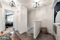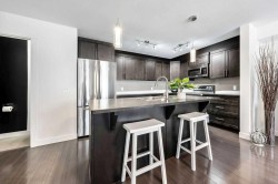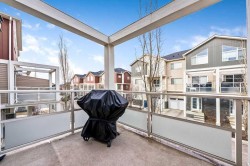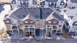 Stylish and thoughtfully updated, this well-maintained Redstone townhome offers the ideal combination of comfort, functionality, and low-maintenance living. With 1,395 square feet of developed space, the bright, open layout is filled with natural light and designed for everyday living.The kitchen is both modern and practical, featuring stainless steel appliances, upgraded lighting, and ample cabinetry for storage. Durable laminate flooring adds a contemporary look while remaining easy to care for, and a built-in sound system enhances daily convenience. The adjacent dining area opens onto a large private deck, perfect for outdoor relaxation or entertaining friends and family.Upstairs, the spacious primary bedroom includes a walk-in closet and a four-piece ensuite. The second bedroom is highlighted by impressive vaulted ceilings, creating an airy and inviting feel. Upper-floor laundry and an additional full bathroom add to the home’s everyday functionality.Additional features include a heated attached garage, newer appliances, and an attractive stone-accented exterior. Ideally located close to parks, playgrounds, shopping, schools, golf, transit, and CrossIron Mills, this home is perfectly situated in a vibrant community that truly offers it all.