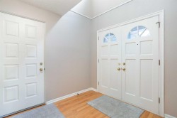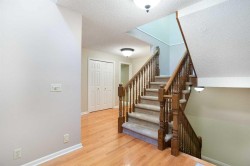 Fantastic opportunity to live in Woodridge Estates, ideally located in the established community of Woodlands and bordering Fish Creek Park. This spacious townhome features a pleasing and functional floor plan with 3 bedrooms and 3 bathrooms, a main-floor den, formal dining room, and a sunken living room filled with natural light. The renovated kitchen includes a breakfast nook and opens to a deck off both the living room and nook, perfect for enjoying the peaceful surroundings.Upstairs, the large primary bedroom offers a sitting area and a 5-piece ensuite, while the second bedroom provides generous space. The fully developed lower level includes a recreation room and a versatile flex room. Additional highlights include a double attached garage and an unbeatable location with direct access to Fish Creek Park’s walking and biking paths. Conveniently close to shopping, Costco, and Stoney Trail, this home combines space, comfort, and an exceptional setting. A Great Place to Call Home