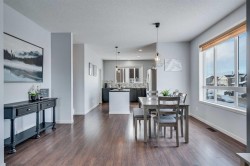 Discover the perfect blend of comfort, style, and location in this beautifully maintained, move-in-ready end-unit townhome in Copperfield, SE Calgary, ideally positioned backing onto a landscaped courtyard greenspace — one of the most sought-after locations in the complex. As the largest floor plan available, this bright and airy home features added architectural windows and desirable northeast, west, and north exposures that flood the space with warm natural light throughout the day.The open-concept main floor showcases soaring 9’ ceilings and a chef-inspired kitchen with quartz countertops, stainless steel appliances, an oversized island, glass mosaic backsplash, walk-in pantry, and pendant lighting. The spacious dining area flows seamlessly into the inviting living room with sliding doors leading to your private back deck, a rare feature in the complex. Step outside and enjoy peaceful courtyard views framed by mature trees, colourful perennials, and a charming gazebo — the perfect spot to relax or entertain.Upstairs offers two generous primary bedrooms, both with walk-in closets, including one with a full ensuite, plus convenient upper-level laundry and a full main bath. The lower level includes a single attached finished garage, excellent storage, and a full basement space ready for your personal touch.Owner-occupied and immaculately maintained, this home shows true pride of ownership and is truly move-in ready. Located in one of Calgary’s most family-friendly communities, Copperfield offers abundant green space with ponds, playgrounds, and an extensive pathway system, along with nearby schools, daycares, and public transit. Enjoy exceptional convenience with shopping and dining just minutes away at Mahogany, South Trail Crossing, and 130th Avenue, plus quick access to Stoney Trail and Deerfoot Trail for an easy commute across the city.A welcoming community atmosphere, modern amenities, and outstanding location make this a fantastic opportunity for first-time buyers, families, professionals, or investors alike. Book your private showing today.