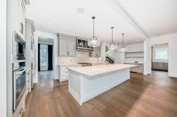 Welcome to this exquisite custom Maillot home, nestled in coveted upper Elbow Park, just steps from the expansive River Park pathway and William Reid French Immersion School. With over 5,000 sq.ft. of beautifully designed living space, this 6-bedroom, 6-bathroom home offers the perfect balance of modern elegance and family functionality.Upon entry, you’ll be greeted by an open, airy floor plan featuring 10’ ceilings, elegant light fixtures, and polished chrome details. The chef-inspired kitchen, equipped with top-of-the-line Wolf and Sub-Zero appliances, is the heart of the home. The spacious great room, with its cozy gas fireplace, and adjoining dining area make this space ideal for both relaxed family living and sophisticated entertaining.A large mudroom and walk-through pantry lead directly to the kitchen, making meal prep a breeze. The main level also includes a convenient den, perfect for a home office or dining room.Upstairs, the second level boasts 4 generously sized bedrooms, each with ample closet space, along with a cozy sitting area and a full laundry room. The opulent master suite features a luxurious 5-piece ensuite, complete with a steam shower and in floor heating for ultimate relaxation.The lower level is designed for fun and relaxation, with radiant in-floor heating, a large family room, full bar, private powder room, and 2 additional bedrooms that share a Jack & Jill bath.Outside, the west-facing backyard is fully landscaped and features a covered deck with a motorized awning, offering the perfect space to unwind. The oversized triple garage is heated, with an EV charger and ample storage space.Additional highlights of this home include double air conditioning units, 8” white oak engineered hardwood flooring, a Hans Grohe/Grohe/Brizo plumbing package, and triple-glazed windows throughout.With its prime location, elegant finishes, and family-friendly design, this home is truly a must-see.