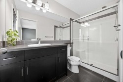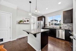 *** OPEN HOUSE Saturday & Sunday (1:00 to 4:00) *** Bright, functional, and MOVE-IN READY, this beautifully maintained Walden semid-detached home offers the freedom of NO CONDO FEES and a layout designed for everyday living. The open-concept main floor is filled with natural light from those large windows. HARDWOOD flooring throughout the living, dining, and kitchen areas creates a seamless and welcoming space for both relaxing and entertaining. The kitchen is both stylish and practical, showcasing GRANITE countertops, generous cabinetry, ample prep space, and a central ISLAND that brings everything together. A discreet powder room adds convenience on the main level. Rear access leads to the WEST-FACING backyard, complete with a GAS LINE for your BBQ — perfect for summer evenings, afternoon sun, and easy outdoor gatherings. There is also a gravel parking pad for 2 cars.Upstairs, the spacious primary bedroom offers a private retreat with its own ENSUITE bathroom featuring tiled floors and a large glass-door shower. A separate WALK-IN CLOSET provides excellent storage. Two additional well-sized bedrooms and a full bathroom offer flexibility for family, guests, or a home office.The basement presents excellent future potential, with a smart layout and BATHROOM ROUGH-IN already in place. Located in a vibrant, family-friendly community close to parks, pathways, playgrounds, shopping, restaurants, and major routes, this home delivers the perfect balance of suburban comfort and city convenience.Designed for real life, this NO CONDO FEES, semi-detached home in Walden stands out for all the right reasons. Book your showing today! OPEN HOUSE Saturday & Sunday (1:00 to 4:00).