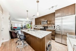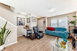 Welcome to this beautifully maintained townhouse in the heart of Auburn Bay! Located just one block from all major amenities—including Superstore, restaurants, movie theatres, South Health Campus, and the largest YMCA in Calgary—this home offers unbeatable convenience and lifestyle. As you step inside, you’re welcomed by a spacious open-concept main floor featuring a bright living room and dining area. The kitchen is finished with quartz countertops, upgraded backsplash, and a newer refrigerator. Durable laminate flooring runs throughout the entire main level, creating a clean and cohesive look. Upstairs, you’ll find two generously sized bedrooms, each with its own full bathroom. The primary bedroom features a 4-piece ensuite, while the second bedroom offers a well-sized layout with its own 3-piece bath—perfect for guests, roommates, or family members. A standout feature of this home is the amazing attic storage space with pull-down hatch and foldable stairs—ideal for storing seasonal items and extra belongings. Additional highlights include: Private fenced yard; Newer hot water tank; Walking distance to the beautiful Auburn Bay Lake; Quick access to Exit 88, Stoney Trail, and Deerfoot Trail. This home offers comfort, functionality, and an exceptional location—perfect for first-time buyers, small families, or investors.